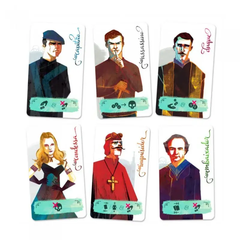 - Assassino: Pague 3 moedas para eliminar uma carta (bloqueável pela Condessa).