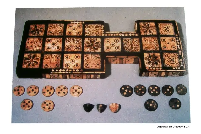 - Jogo Real de Ur, da Mesopotâmia, uma mistura de estratégia e sorte.
