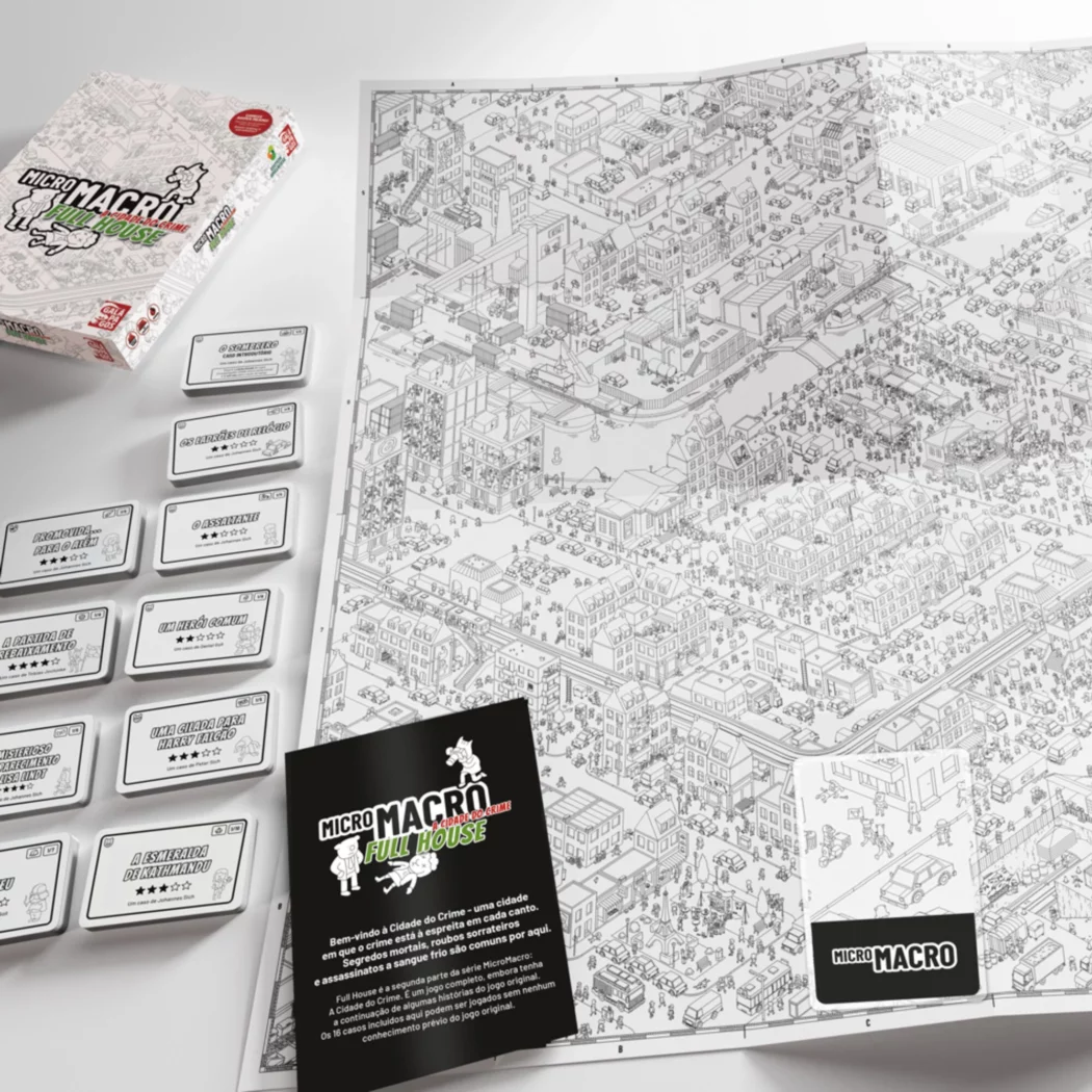 Com um mapa gigante da cidade, medindo 75 cm por 110 cm, e uma lupa para examinar detalhes, é ideal para desvendar crimes com os amigos.