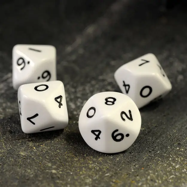 - D10: Muito utilizado em jogos como Call of Cthulhu e Storyteller (Vampiro: A Máscara)