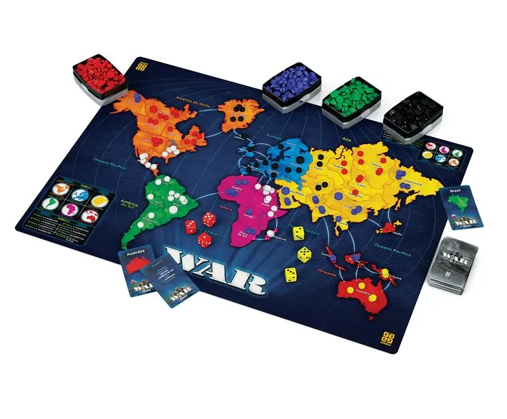 - 1 tabuleiro representando um mapa-múndi dividido em 6 continentes e 42 territórios;